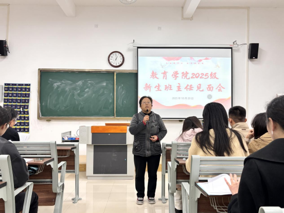 随后,孟向红介绍了25级新生班级及辅导员带班情况,并对班主任工作提出了要求。她说学校对班主任工作有着明确的管理和考核办法,责任重大、使命光荣,希望新生班主任老师尽快适应班主任角色,以饱满的热情投入工作,加强与辅导员老师的沟通交流,深入班级了解学生的特点和需求,通过组织班会、个别谈话等形式积极教育引导学生,努力成为学生成长成才的指导者和引路人。她还鼓励班主任老师和辅导员密切配合,走进学生课堂、宿舍、网络开展学生管理工作,形成教育合力。
